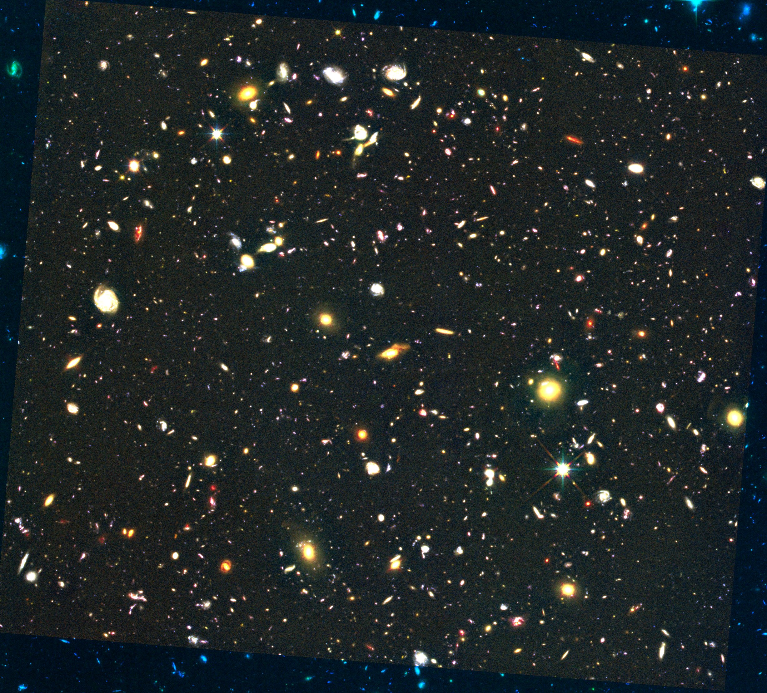 Von September 2003 bis Januar 2004 investierte das Hubble-Space-Telescope rund 1 Million Sekunden Belichtungszeit in die bis heute "tiefste" Aufnahme des Weltalls. Umgerechnet auf die Betriebskosten des Weltraumteleskops ist leicht auszurechnen, dass es sich beim resultierenden "Hubble Ultra Deep Field" (HUDF) auch mit Abstand um das teuerste Foto aller Zeiten handelt. Nach der letzten Servicing-Mission im Mai 2009 mit (u.a.) dem Einbau der Wide-Field Camera 3, einer neuen infrarotempfindlichen Kamera, wurde 2009 ein Nachfolger des HUDF erstellt - nicht ganz so gross wie das HUDF, nicht ganz so lange belichtet, mit etwas anderer Orientierung, aber eben in Farben, für die es noch keine vergleichbar tiefen Aufnahmen gab.